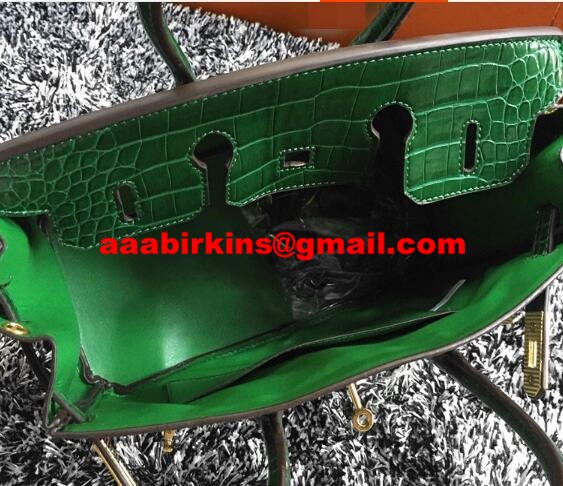 Hermes Birkin 35cm kabelka z krokodýlí kůže zelená zlatá