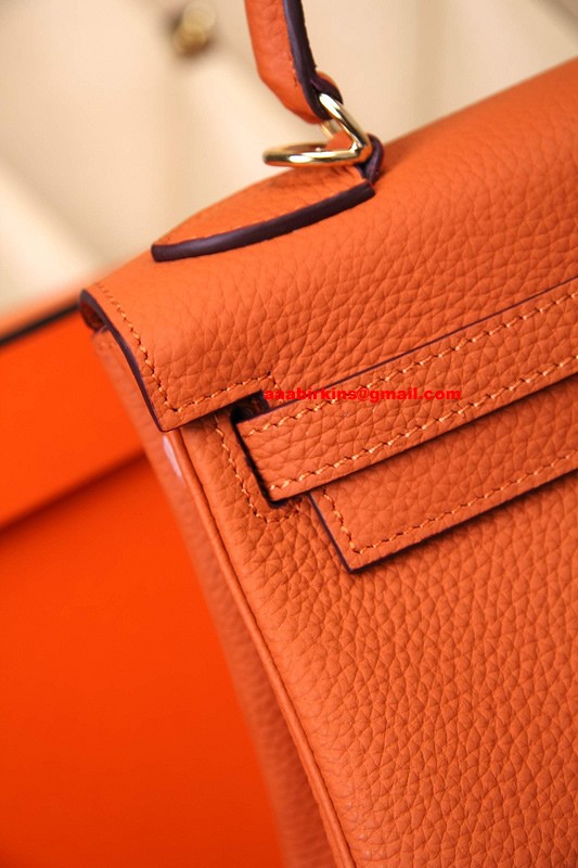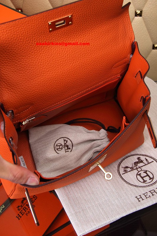 Hermes Kelly 32cm Epsom kožená kabelka oranžovo-zlatá