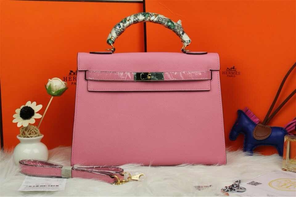 Hermes Kelly 32cm Epsom kožená kabelka růžová