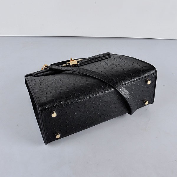 Hermes Kelly 32cm Pštrosí žíla 6108 Černá Zlatá