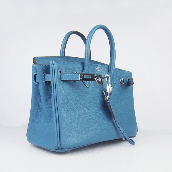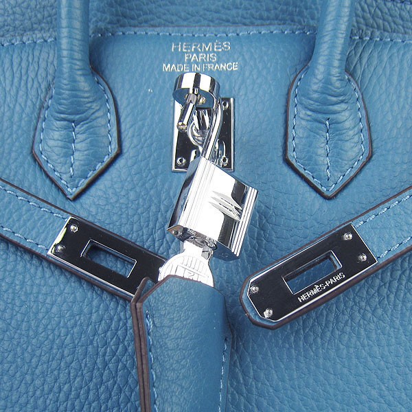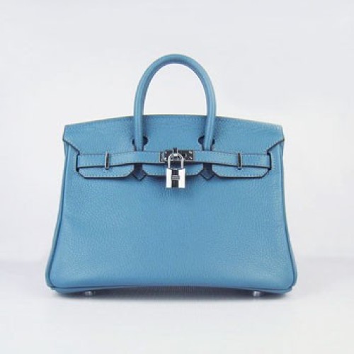 Hermes Birkin 25cm kabelka 6068 modrá stříbrná