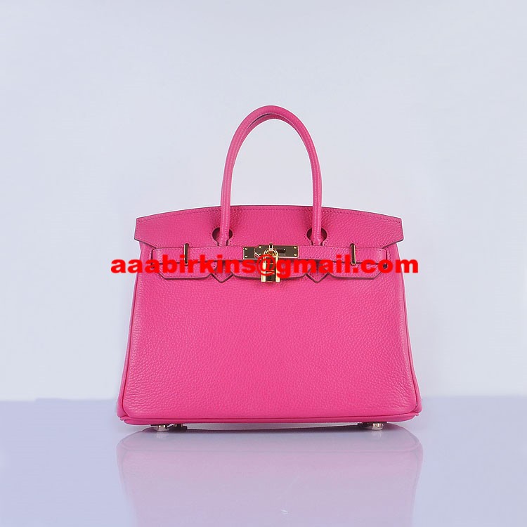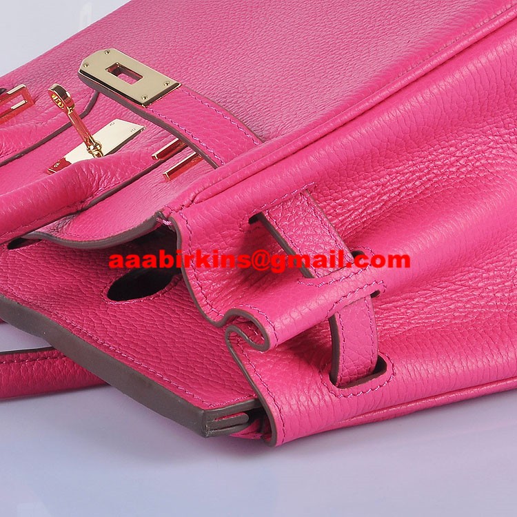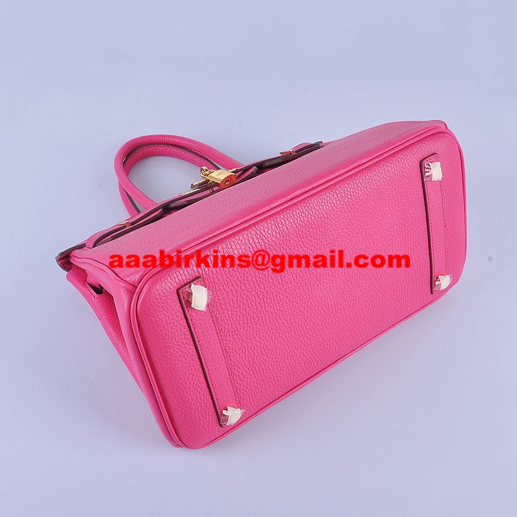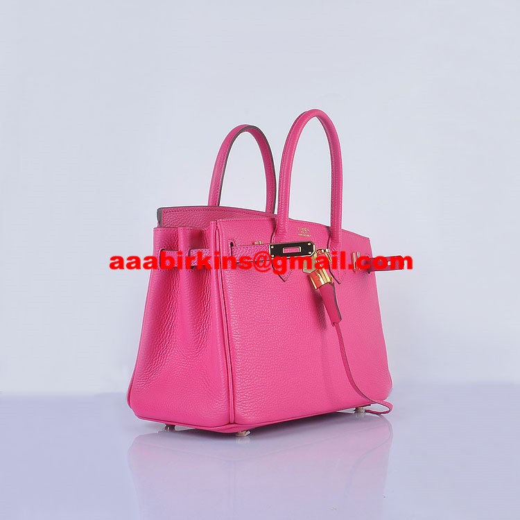 Tato kožená kabelka Hermes Birkin 30cm Togo růžovo-zlatá je dodávána s: zámkem Hermes, klíči, prachovým sáčkem, kartou