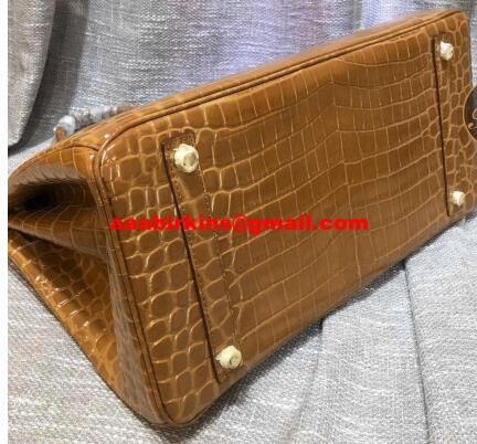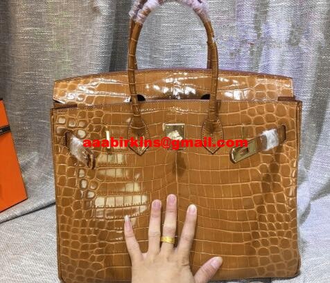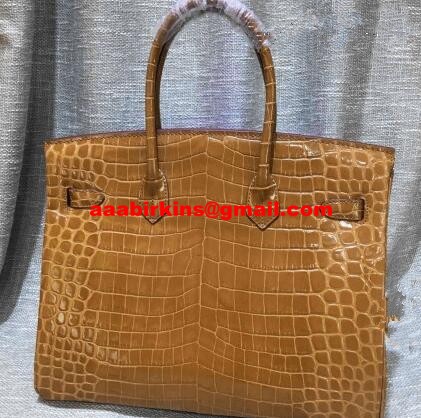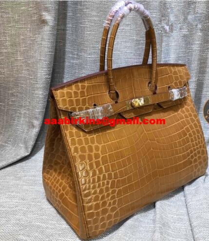Hermes Birkin 35cm kabelka z krokodýlí kůže hnědá zlatá