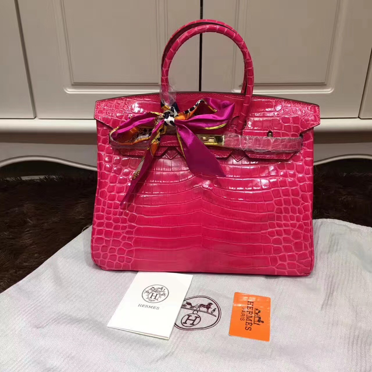 • Hermes Birkin 35cm kabelka z krokodýlí kůže růžové zlato