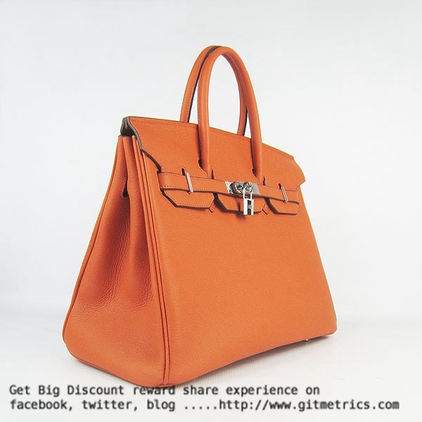 Hermes Birkin 35cm kabelka z hovězí kůže žíly oranžová stříbrná