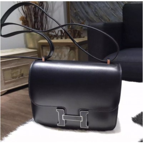 VZÁCNÁ Hermes Mini Constance 18cm Lizard Box Telecí kůže Palladium Hardware Ručně šité, Noir CK89 RS16457