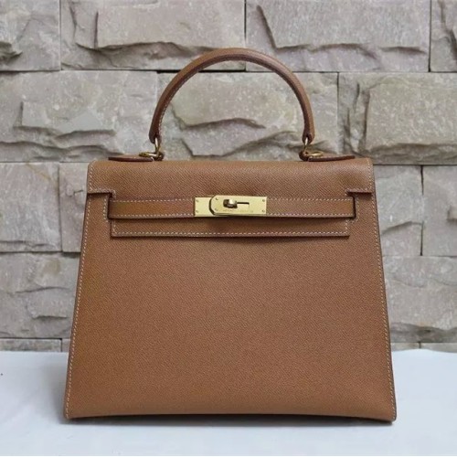 Hermes Kelly 28cm Epsom kožená kabelka hnědá zlatá