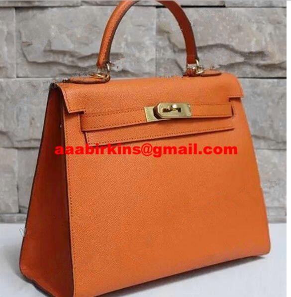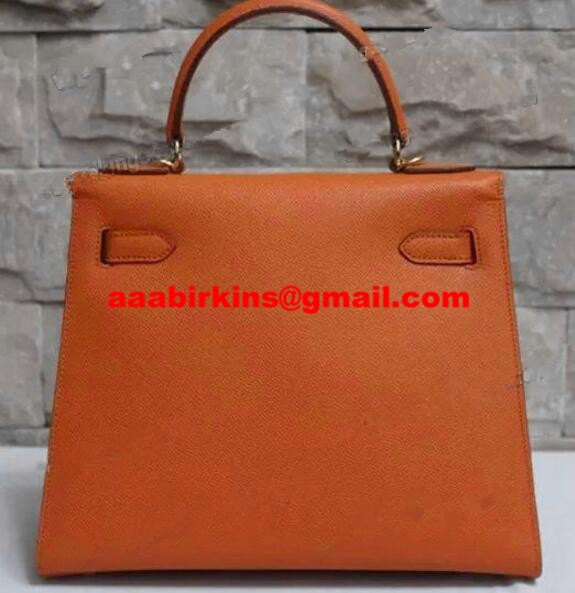 Hermes Kelly 28cm Epsom kožená kabelka oranžovo-zlatá