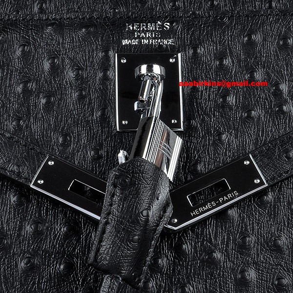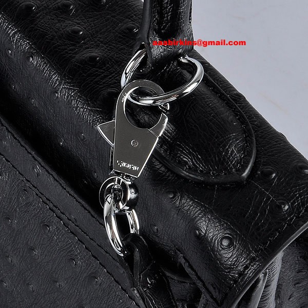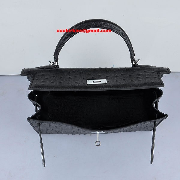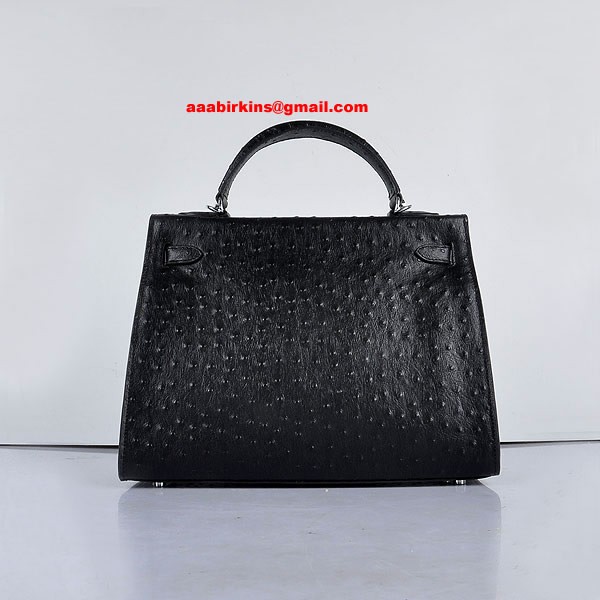 Hermes Kelly 32cm Pštrosí žíla 6108 Černá Stříbrná