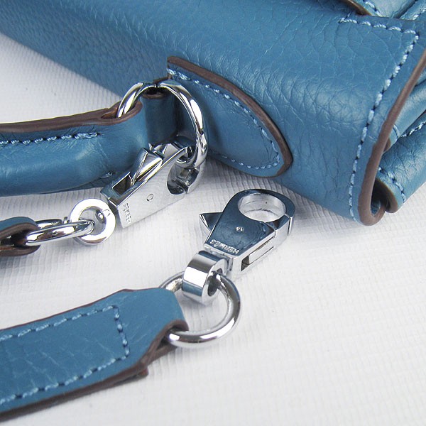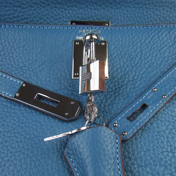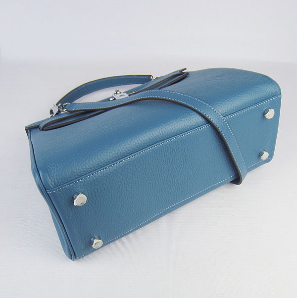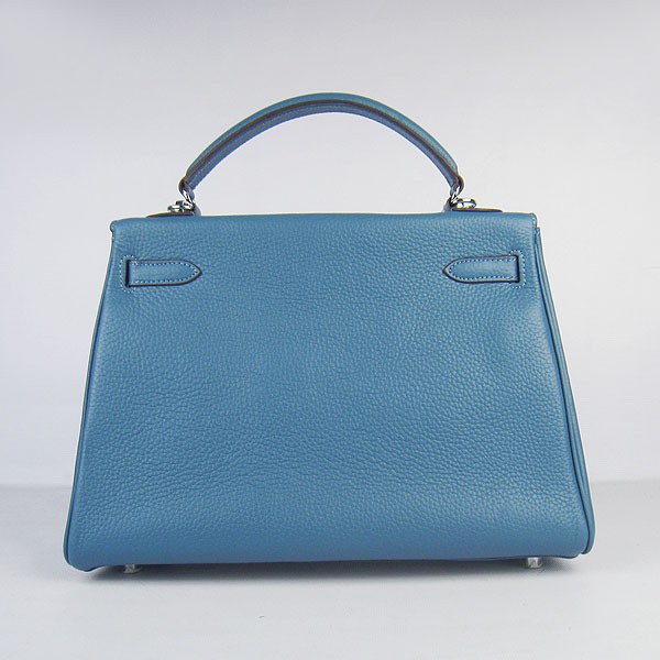 Kožená kabelka Hermes Kelly 32cm Togo modrá/stříbrná