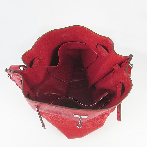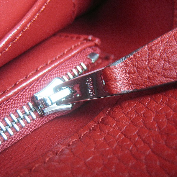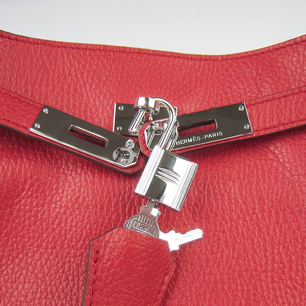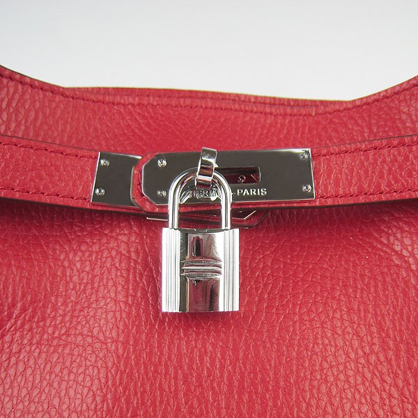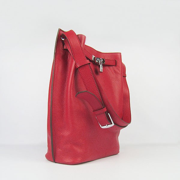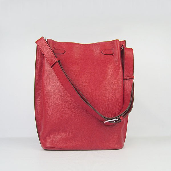 Hermes So Kelly 28cm Togo kožená taška přes rameno červená stříbrná
