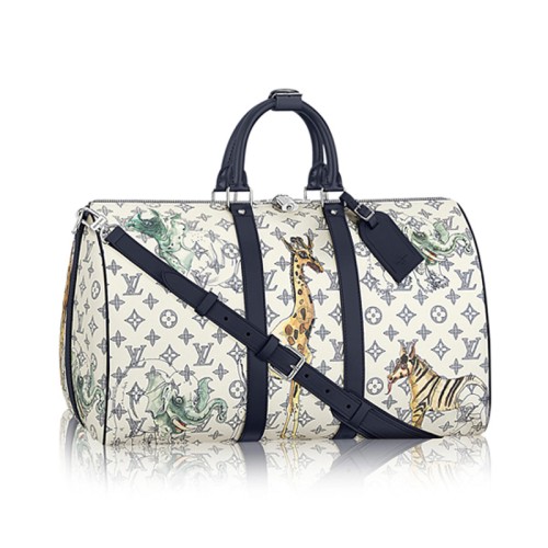 Cestujte stylově s touto cestovní taškou z plátna s monogramovým potiskem zvířat od slavných bratrů Chapmanových. Od roku 1930 je Keepall taškou volby elegantních světoběžníků. Tato moderní verze kabelky Keepall 45 Bandouliere snadno pojme všechny nezbytnosti na noční výlet.