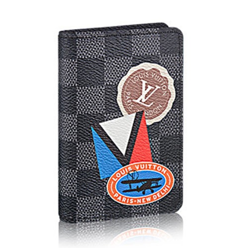 Kolekce LV League 2017 vzdává hold historii Louis Vuitton, minulé i současné. Spojuje ikonické značky inspirované kolekcí Gaston-Louis Vuitton a značky ve stylu univerzity. Tento kapesní organizér je perfektním společníkem pro muže, kteří hledají peněženku typu „vše v jednom“. Pojme kreditní karty, bankovky a dokumenty (zdobené vintage cestovními samolepkami LV League ve stylu Kim Jones).