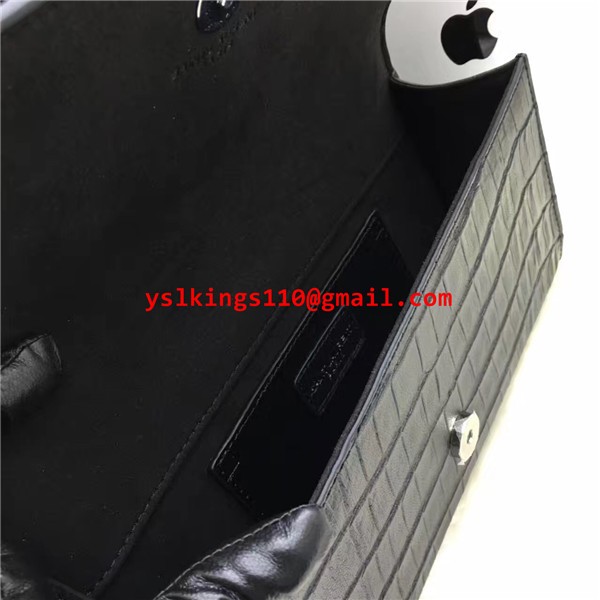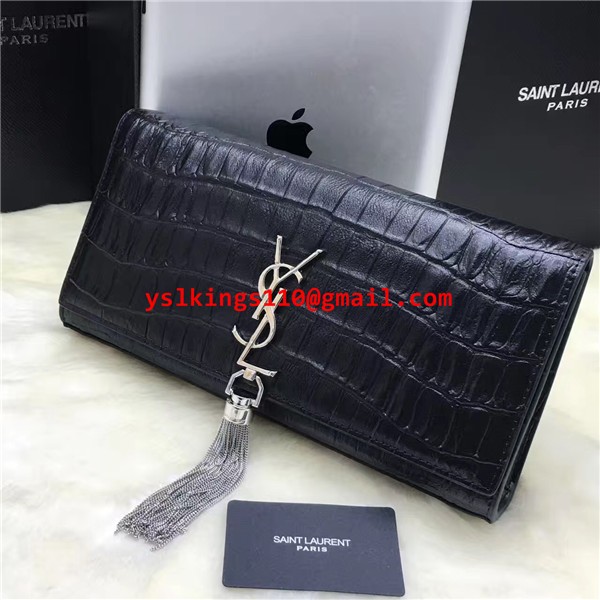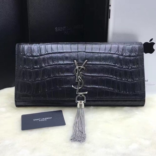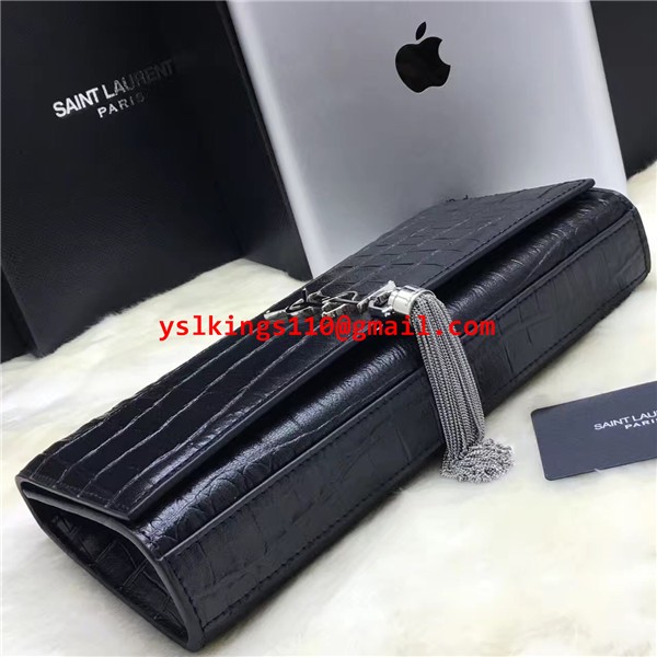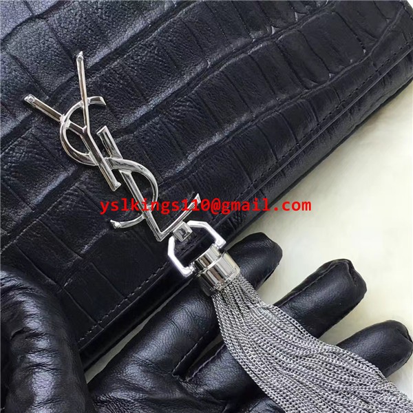 YSL střapcová kabelka 27cm, krokos kožená, černo-stříbrná