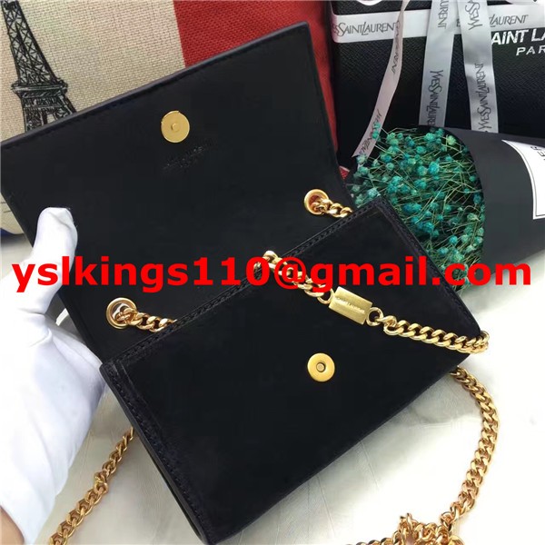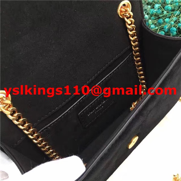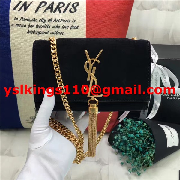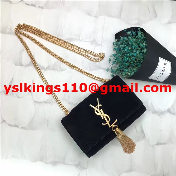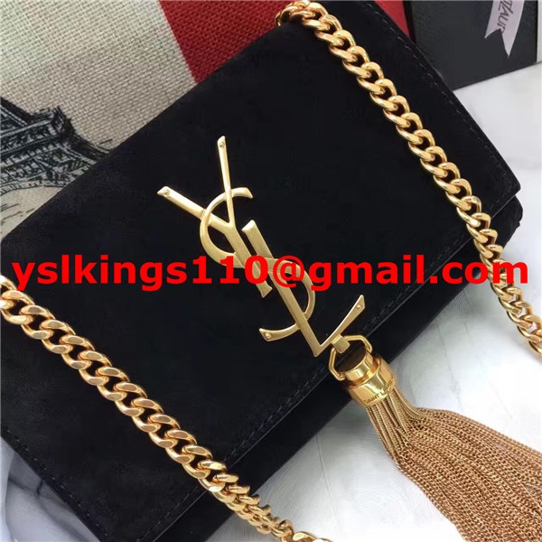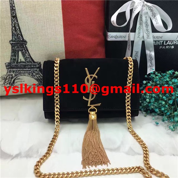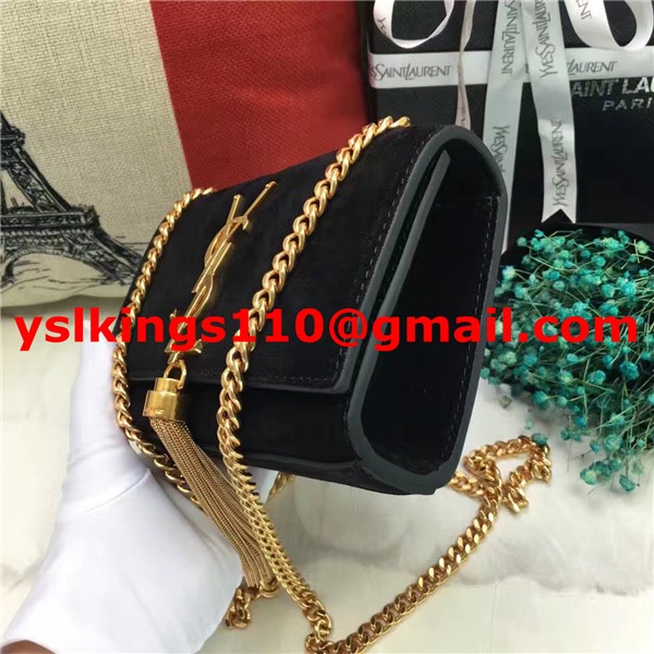 YSL malá řetízková kabelka s střapcem 17 cm, semišová kůže, černá
