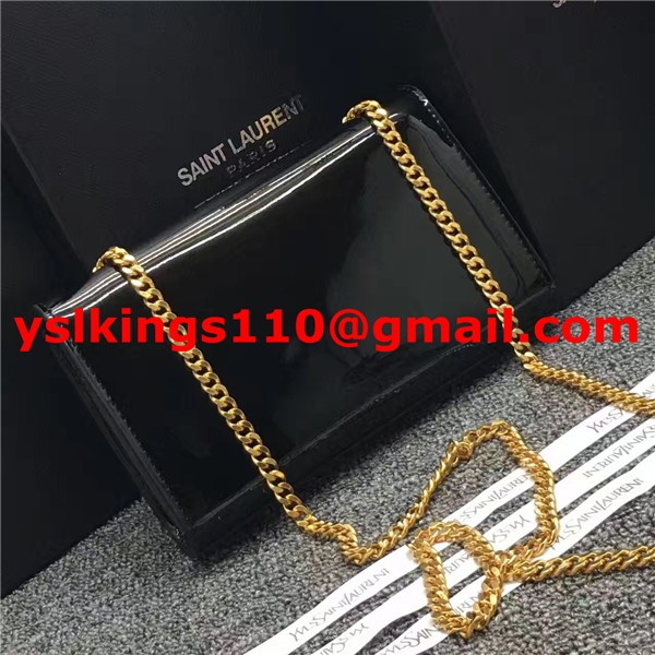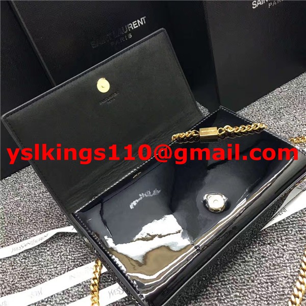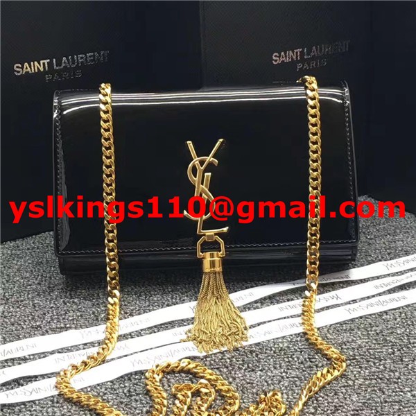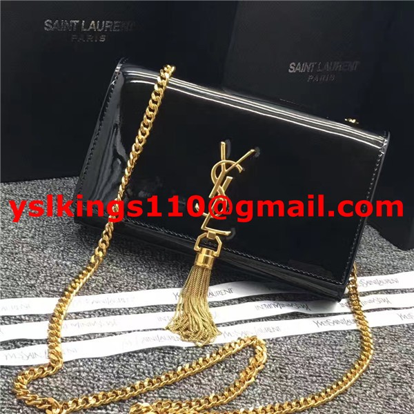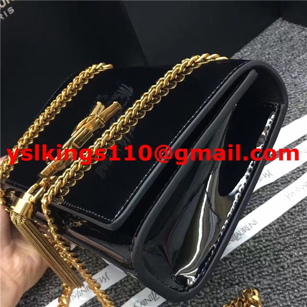 YSL kabelka s řetízkem a střapcem 22 cm, lakovaná kůže, černá