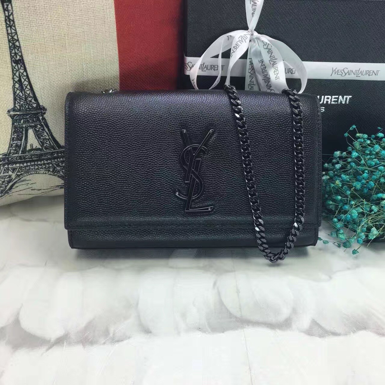 Kožená kabelka s řetízkem YSL Caviar 22 cm černá