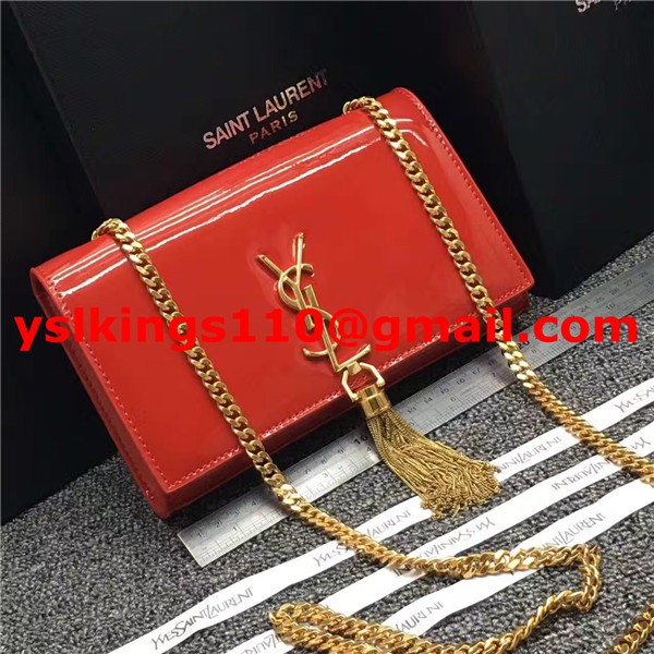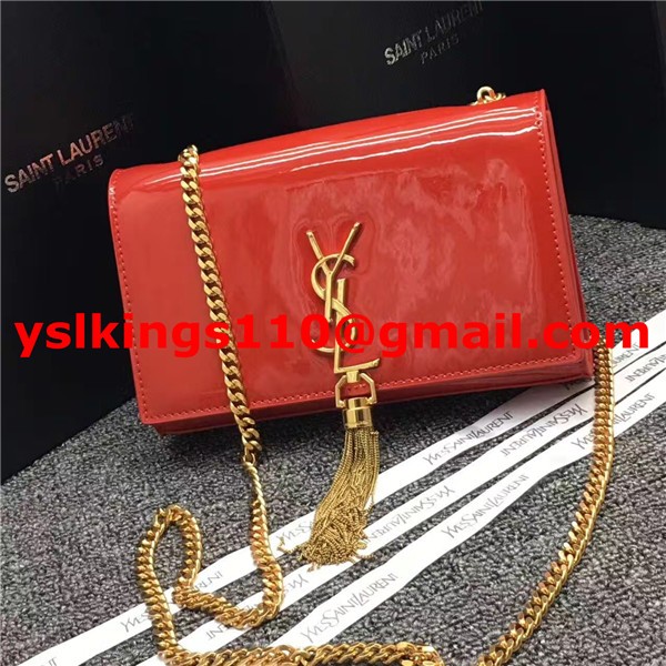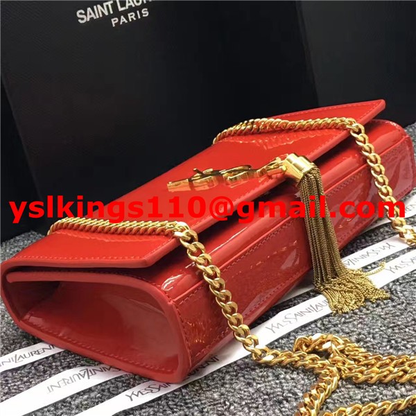 Kabelka s řetízkem YSL Tassel 22cm, lakovaná kůže, červená