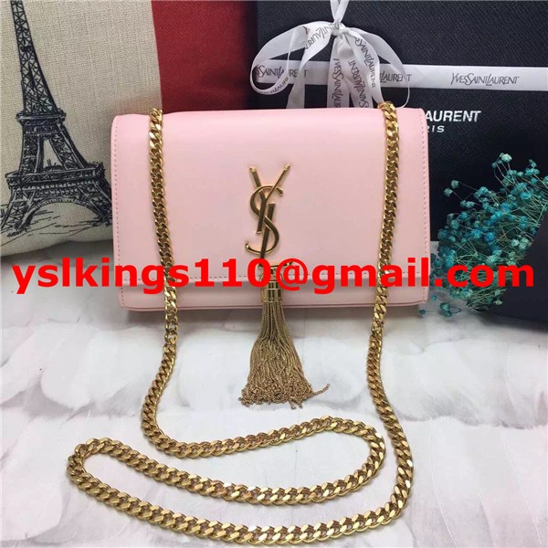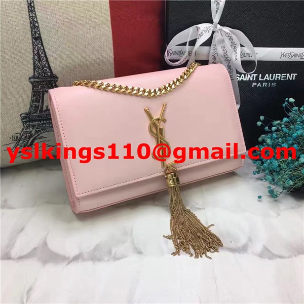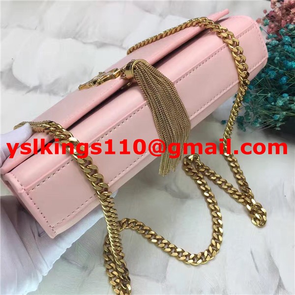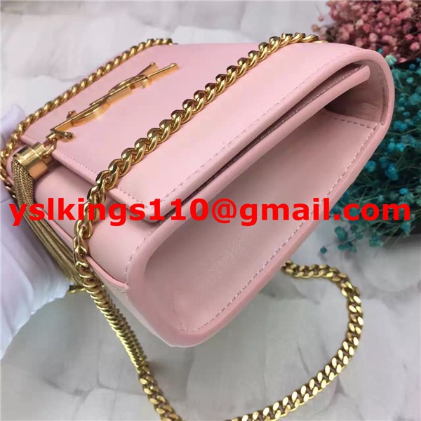 Kabelka s řetízkem YSL Tassel 22cm, hladká kůže, světle růžovo-zlatá