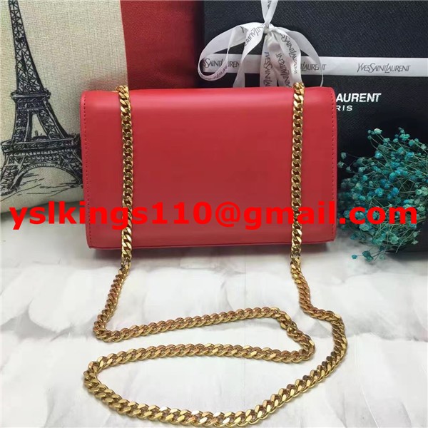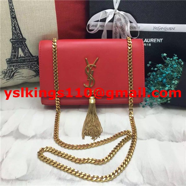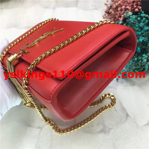 Kabelka s řetízkem YSL Tassel 22cm, hladká kůže, červeno-zlatá