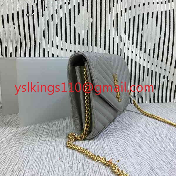 YSL kabelka na řetízek z kaviárové kůže šedá 23 cm