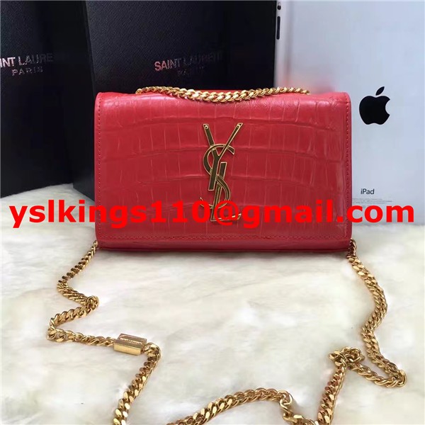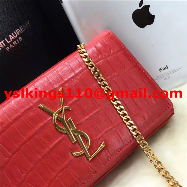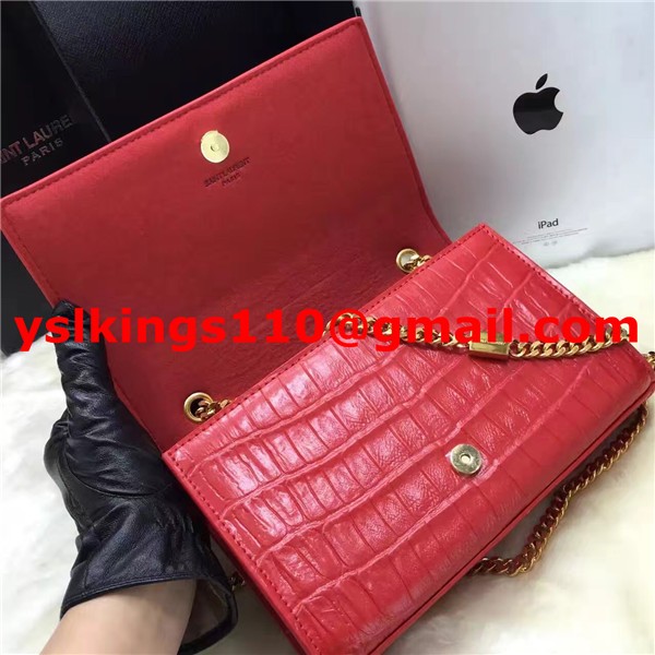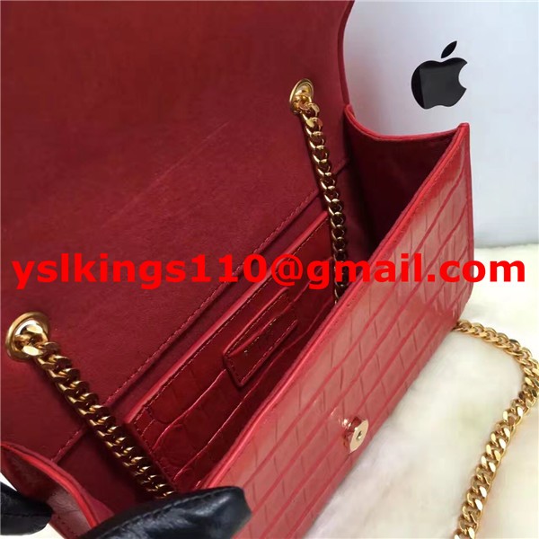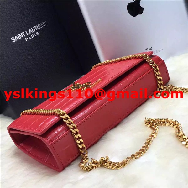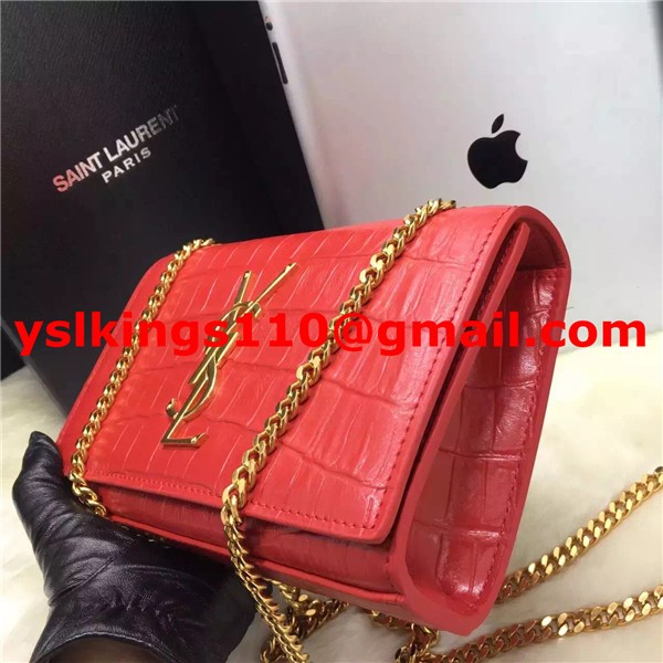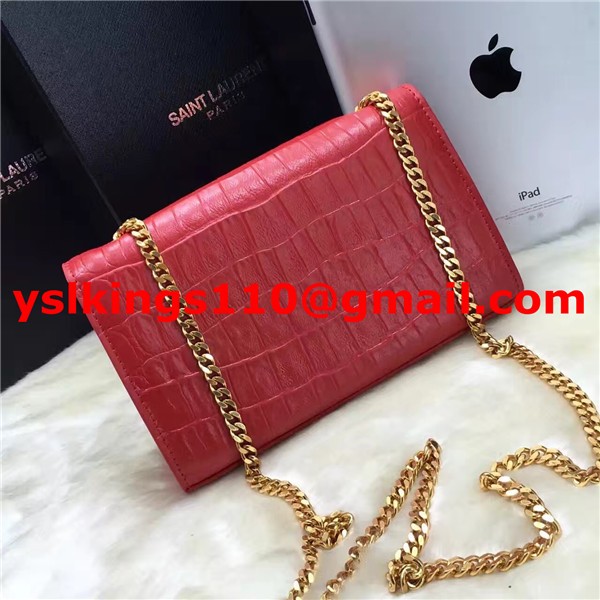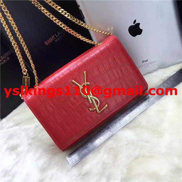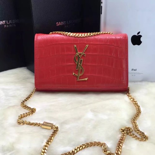 Řetízková kabelka YSL Monogram 22cm, krokostříle červená, zlatá