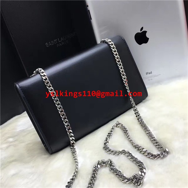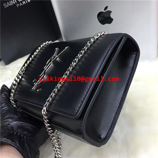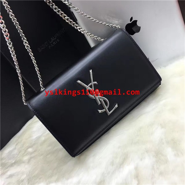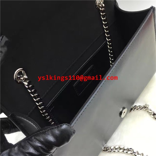 YSL Hladká kožená kabelka s řetízkem 22 cm černo-stříbrná