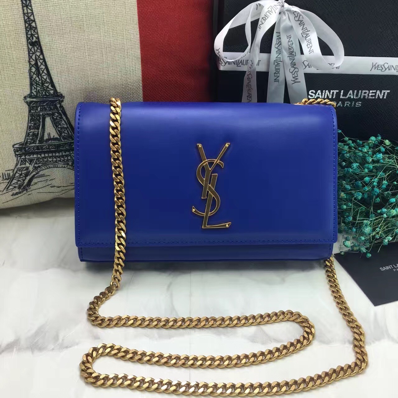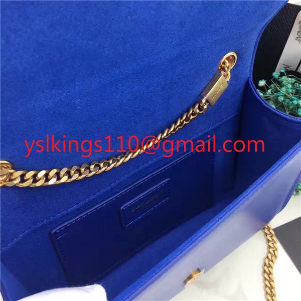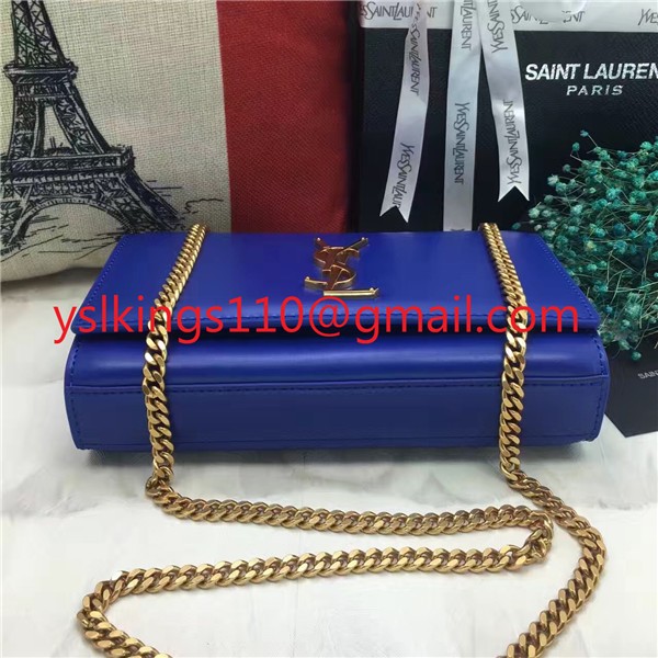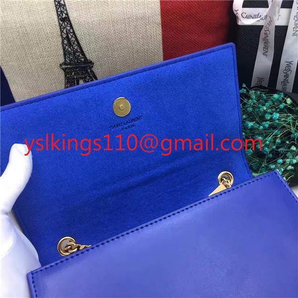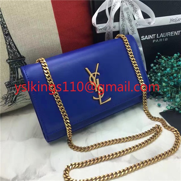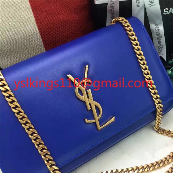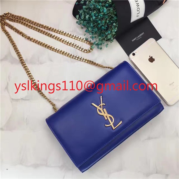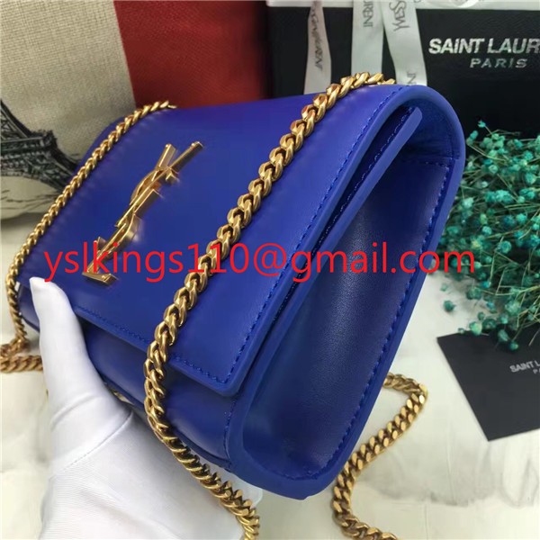 YSL hladká kožená kabelka s řetízkem 22 cm modrá