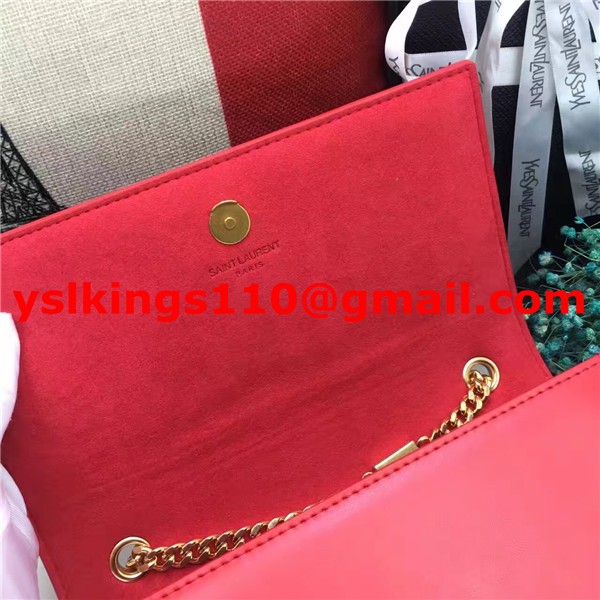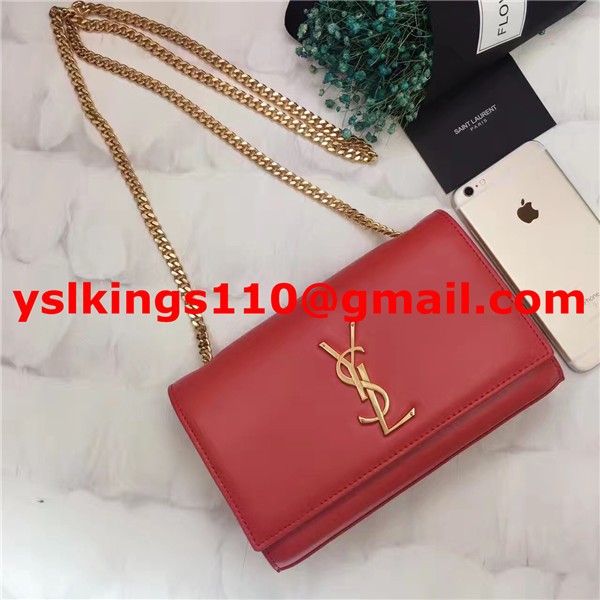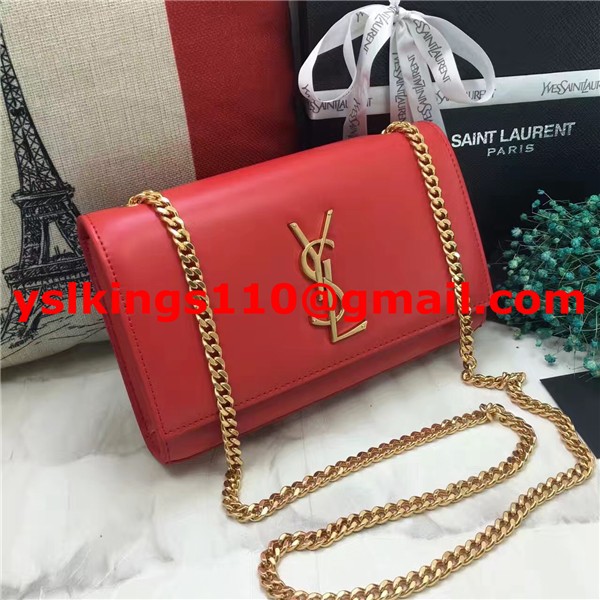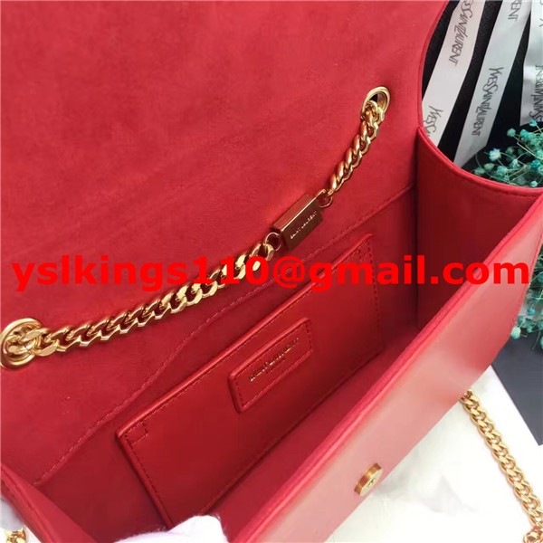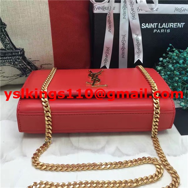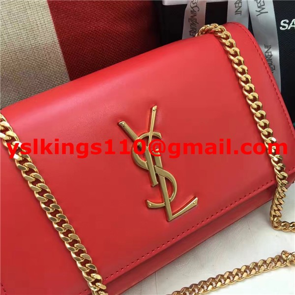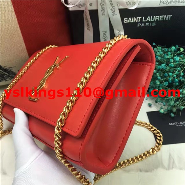 YSL Hladká kožená kabelka s řetízkem 22 cm červená