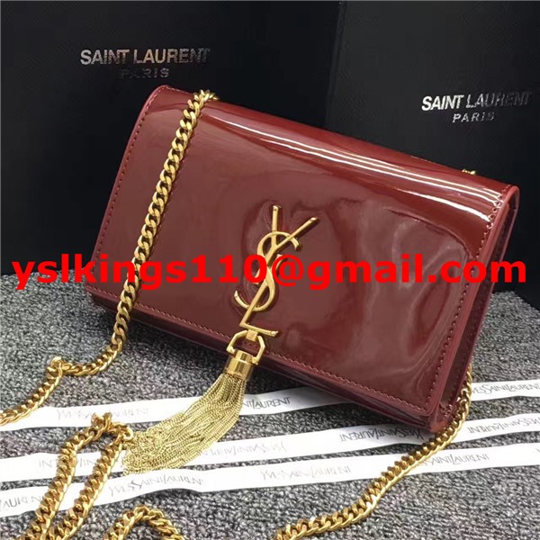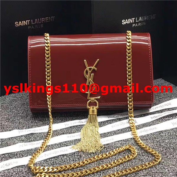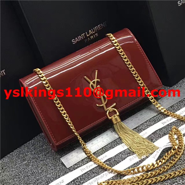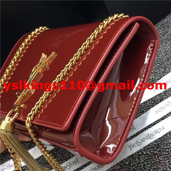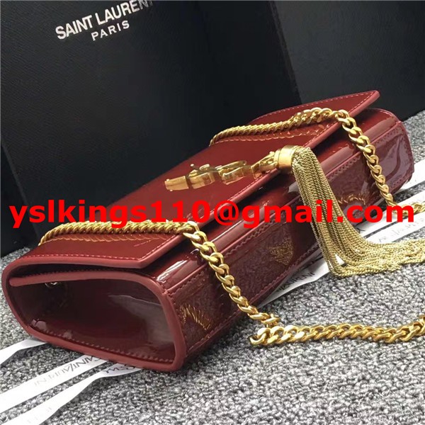 Kabelka s řetízkem YSL Tassel 22 cm, lakovaná kůže, tmavě červená