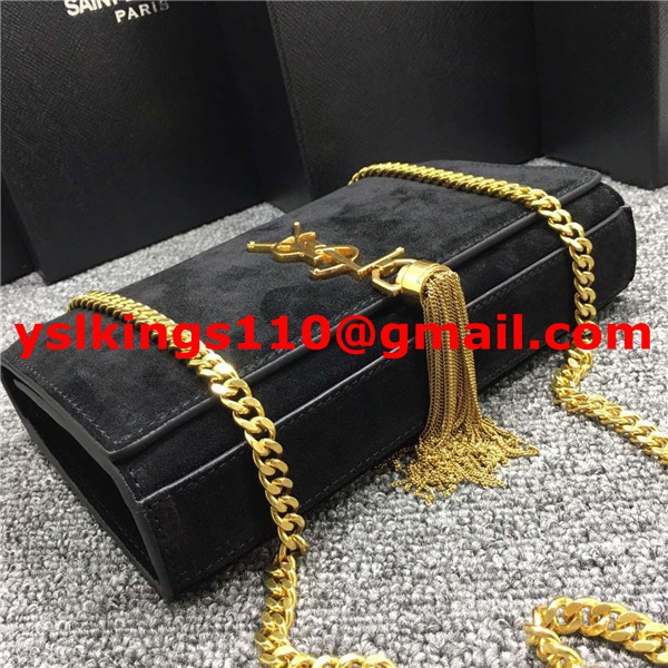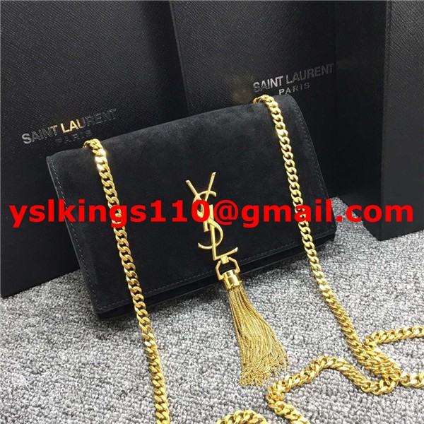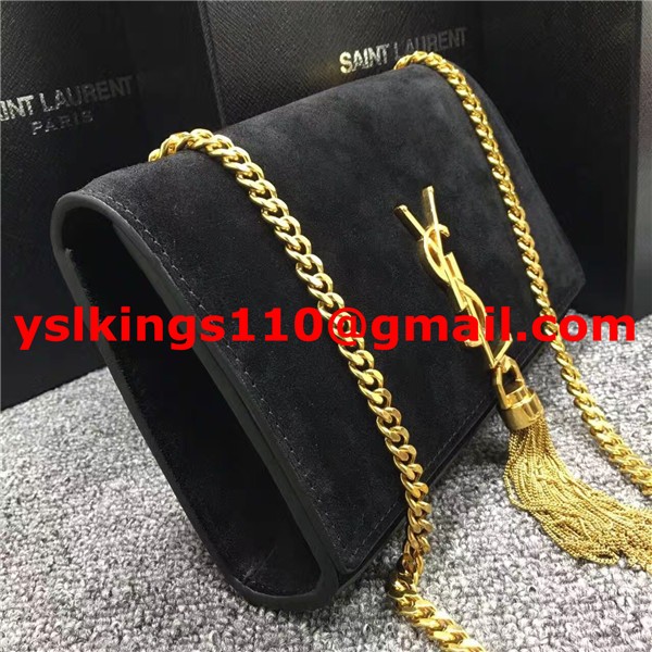 Kabelka s řetízkem YSL Tassel 22 cm, semišová kůže, černá
