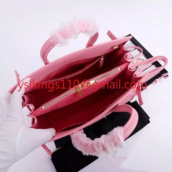Růžové kabelky z hovězí kůže YSL Downtown Tote